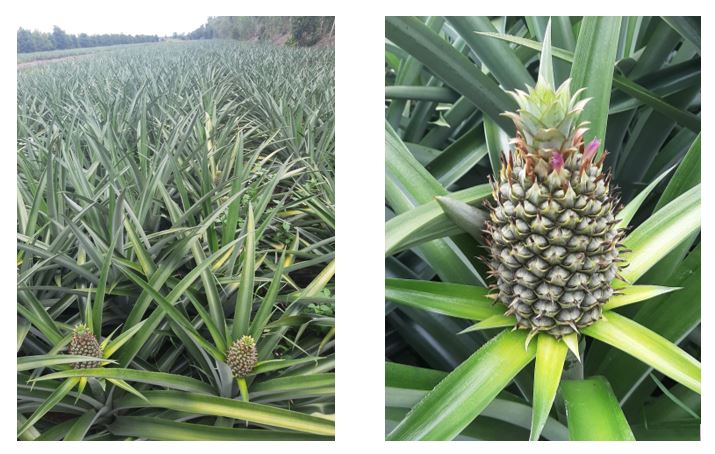 Thực tế, trong những loại cây trồng chính của ngành nông nghiệp, cây dứa phát thải một lượng phụ phẩm rất lớn vì tổng diện tích trồng trọt lên đến 41.000 ha, cho sản lượng 567.100 tấn vào năm 2017 (Hình 1). Các sản phẩm phụ bao gồm vỏ, lá, hạt và thịt không sử dụng chiếm 50% tổng trọng lượng dứa thu hoạch [2]. Ước tính 1 ha dứa phá đi để trồng lại sau hai vụ thu quả sẽ để lại khoảng 50 tấn phụ phẩm [3]. Tuy nhiên, phụ phẩm của chúng hiện vẫn chưa được xử lý đúng cách và triệt để. Người nông dân sau mỗi vụ thu hoạch thường đốt những phụ phẩm này ngay trên đồng ruộng, dẫn đến việc phát thải các khí nhà kính như CO2, CH4, các hạt bụi mịn và hợp chất nhân thơm đa vòng vào trong không khí, đồng thời gây xói mòn đất trồng trọt [4, 5]. Ngoài ra, để tiết kiệm chi phí xử lý, các bãi chứa phụ phẩm mọc lên khiến diện tích đất trồng trọt bị thu hẹp dần.