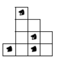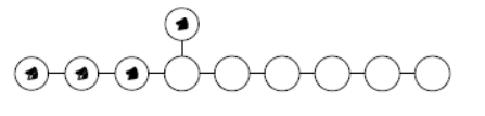 Sau hàng trăm lần thử, dành toàn bộ sức lực trong hơn một tuần cho câu đố này, tôi gần như bỏ cuộc. Sau đó, tôi nhận ra rằng nước đi hình chữ L của quân mã và hình dáng bất thường của bàn cờ không có liên quan gì đến câu đố; thứ duy nhất quan trọng là mối quan hệ giữa các ô bàn cờ. Do đó, câu đố này tương đương với bài toán hoán đổi vị trí các quân mã đen và trắng ở đồ thị sau, trong đó các quân mã bây giờ di chuyển từ một đỉnh sang một đỉnh láng giềng của nó: