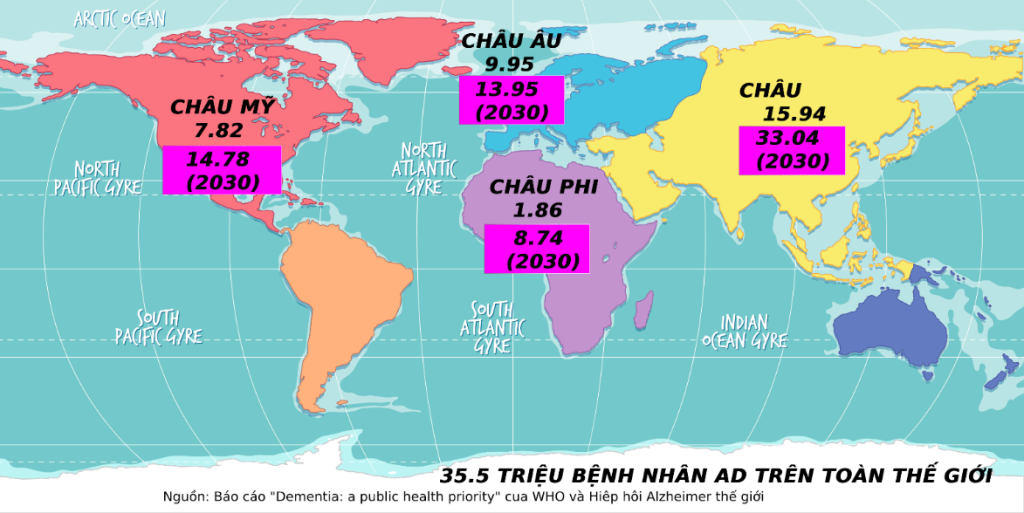 Hình 2. Dự đoán phân bố bệnh nhân Alzheimer trên thế giới: từ hiện tại đến năm 2030