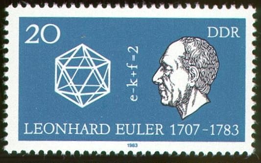 Hình của Euler và khối nhị thập diện đều được in trên con tem của Đức (Ảnh tư liệu).