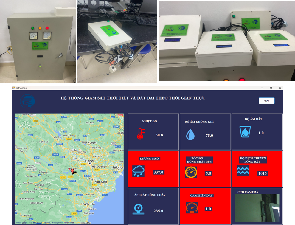 Trong thời gian nghiên cứu, nhóm nghiên cứu về Cơ điện tử và Tự động hóa, Trường Đại học Công nghệ, ĐHQGHN đã phát triển hệ thống điều khiển thông minh tự động tiếp nhận tín hiệu từ các cảm biến, xử lý và cảnh báo sớm nguy cơ lũ quét, sạt lở đất. Hệ thống bao gồm cả phần cứng và phần mềm, với khả năng thu thập, phân tích dữ liệu, và đưa ra các cảnh báo chính xác, kịp thời về các hiện tượng nguy hiểm này. Các thiết bị phần cứng kết nối với các cảm biến thông minh sẽ được điều khiển bằng phần mềm và ứng dụng di động.