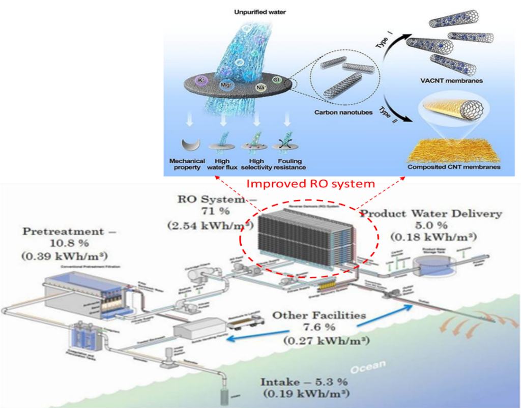 Hình 3. Cải tiến công nghệ RO trong xử lý nước biển (hiệu chỉnh từ tài liệu [4])