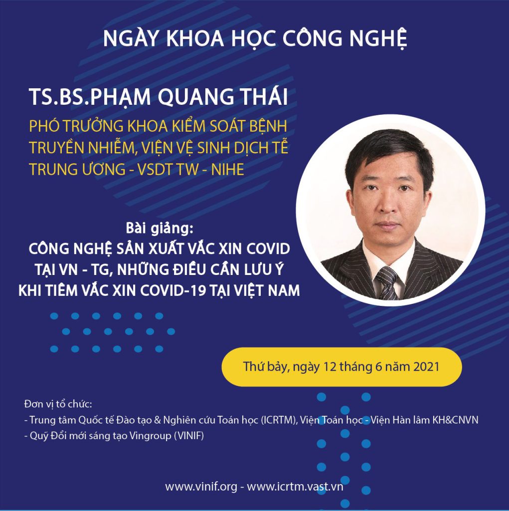 TS. BS. Phạm Quang Thái và bài giảng “Công nghệ sản xuất vắc xin COVID-19 – Bối cảnh Việt Nam – Thế giới trong sản xuất vắc xin và những điều cần lưu ý khi tiêm vắc xin COVID–19 tại Việt Nam”.