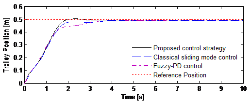 Hình 2. Kết quả thực nghiệm của các giải thuật điều khiển của mô hình cầu trục