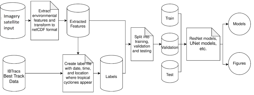 Với sự phát triển nhanh chóng của các kỹ thuật học máy, ngành khoa học khí quyển cũng bắt đầu áp dụng các kỹ thuật này, tuy còn rất mới mẻ và sơ bộ. Hầu hết các nghiên cứu gần đây tập trung vào phân tích hình ảnh vệ tinh để xác định hướng đi và cường độ của bão liên quan đến các kiểu mây khác nhau. Tương tự, Miller và các cộng sự (2017) đã sử dụng phương pháp học sâu với tập dữ liệu vệ tinh GOES IR để huấn luyện một mạng nơ-ron có thể sử dụng để tìm kiếm các mẫu mây và phân loại cường độ bão dựa trên các hình dạng mây khác nhau. Hướng tiếp cận này đã tiếp tục được phát triển giúp cải thiện dự báo hình thành bão sớm bằng cách tích hợp thêm các thông tin quan trắc và các dữ liệu tái phân tích. (Gao et al. 2018, Kim et al. 2019b, Giffard-Roisin et al. 2020).