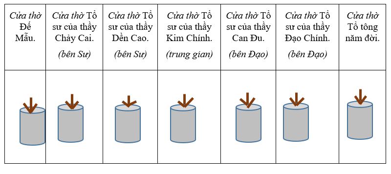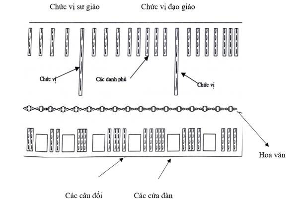 Hình 4. Sơ đồ treo tranh cấp sắc ở Bát đàn lễ cấp sắc bản Nhiều Sang, xã Hồ Thầu, huyện Tam Đường, Lai Châu