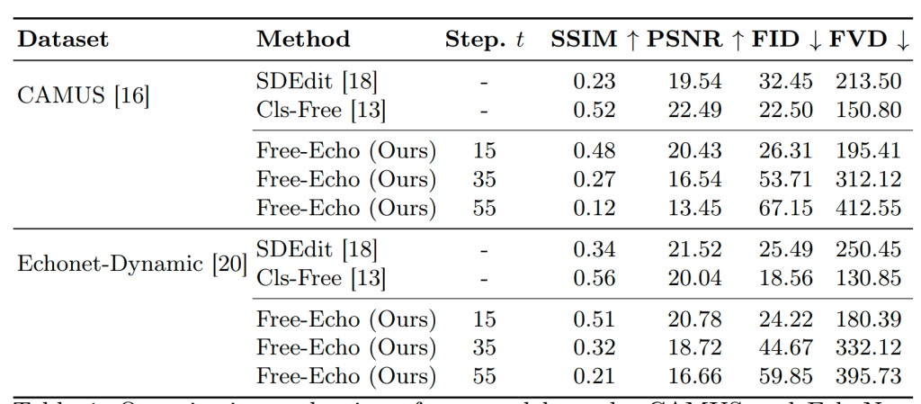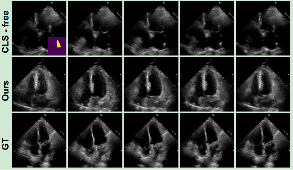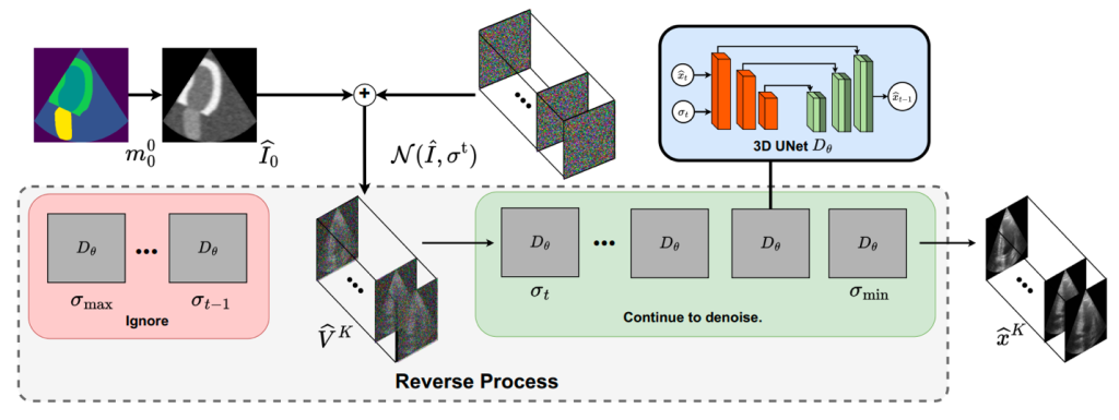 Bên cạnh các mô phỏng dựa trên vật lý, các mô hình tạo sinh bằng học sâu (deep learning) dựa trên dữ liệu như mạng đối nghịch tạo sinh (Generative Adversarial Networks – GANs) đã được đề xuất để tạo ra các hình ảnh siêu âm tim thực tế. Dù có những kết quả hứa hẹn, chất lượng của các hình ảnh siêu âm được tạo bởi GANs thường bị giới hạn do vấn đề “sụp đổ chế độ” (mode collapse). Các mô hình khuếch tán (Diffusion Models – DMs) gần đây đã nổi lên như một lựa chọn thay thế hứa hẹn cho GANs để tạo ra các video và điều kiện thực tế hơn, nhờ vào quy trình đào tạo dễ dàng hơn và chất lượng mẫu tốt hơn. Tuy nhiên, việc kiểm soát sự sinh tạo của các mô hình khuếch tán hiện tại đòi hỏi một bộ dữ liệu song song của bản đồ phân vùng và hình ảnh siêu âm tim; điều này không phải lúc nào cũng có sẵn trong lĩnh vực hình ảnh y tế.