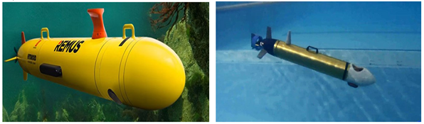 Phương tiện tự hành dưới nước AUV: AUV bắt đầu được nghiên cứu từ những năm 1970 để khắc phục các hạn chế của những thiết bị lặn có người lái và cả ROV. Các thiết bị này có khả năng hoạt động trong nhiều dạng môi trường khác nhau từ sông ngòi, vùng biển đến các vùng lạnh giá khắc nghiệt ở hai đầu cực. Ngày nay, cùng với việc phát triển của các dạng vật liệu mới, kỹ thuật máy tính, thiết bị cảm biến, cũng như sự tiến bộ về lý thuyết điều khiển robot, hàng loạt các dạng AUV nhỏ gọn, tiên tiến, thông minh và đáng tin cậy đã được chế tạo và đưa vào ứng dụng trong thực tế như quan trắc môi trường, khảo sát địa hình, giám sát, hỗ trợ cứu hộ cứu nạn đường thủy, dò tìm vật thể kim loại dưới nước. Tuy nhiên AUV nói chung cũng không thể thay thế hoàn toàn ROV trong một số nhiệm vụ đặc thù vì mỗi thiết bị đều có lợi thế và nhược điểm riêng. Cả ROV và AUV đều được áp dụng rộng rãi và được quan tâm như nhau.