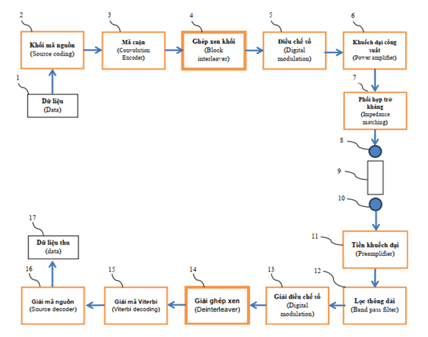 Hình 4. Sơ đồ tổng quan hệ thống thông tin liên lạc thủy âm kỹ thuật số [2, 3]