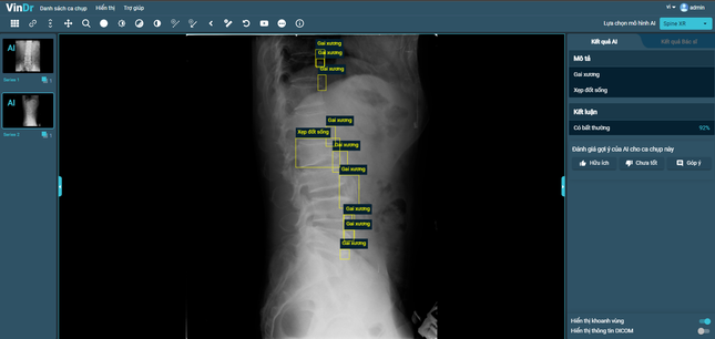 After more than a year of ceaseless efforts, VinBigdata has successfully developed a new module for interpreting spine X-ray images. It can detect 6 types of common lesions in Vietnam, including: osteophytes, disc space narrowing, surgical implant, foraminal stenosis, spondylolisthesis and vertebral collapse, with accuracy rate of 90%.